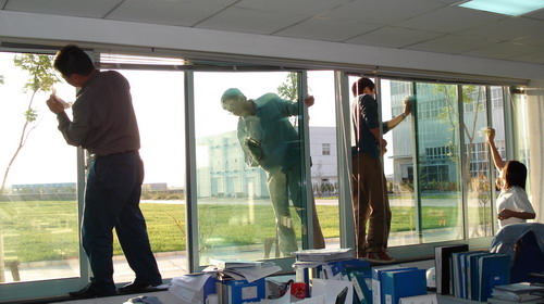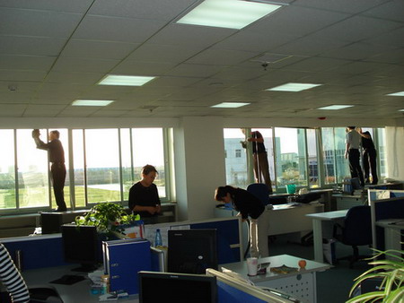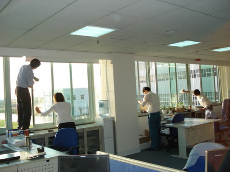 業(yè)務(wù)技術(shù)黨支部共32人參加勞動(dòng),支部書記梁文運(yùn)與支委們首先對(duì)負(fù)責(zé)清理的二樓、四樓場(chǎng)所及會(huì)議室的窗戶和地面進(jìn)行了詳細(xì)分工,使大家在有限的時(shí)間內(nèi)有條不紊的進(jìn)行。特別是二樓只有13人參加勞動(dòng),衛(wèi)生清理工作量比較大,但大家都沒(méi)有任何怨言。在勞動(dòng)中,鄭素紅、房凝、徐寶紅、牛愛(ài)香四位女同志連續(xù)工作一個(gè)半小時(shí)打掃了二樓的所有辦公室和會(huì)議室的地面。李正民副總和李同華副總率先帶頭擦起了窗戶,在擦完窗戶后大家又把所有的窗臺(tái)和地面的衛(wèi)生死角清理了一遍。