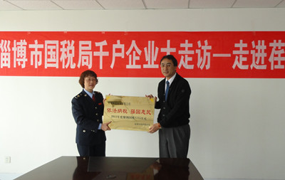 會上,舉行了授牌儀式,志賀進(jìn)總經(jīng)理從婁局長手中接過了淄博市國稅局頒發(fā)的 “依法納稅 強(qiáng)國惠民” 的牌匾。